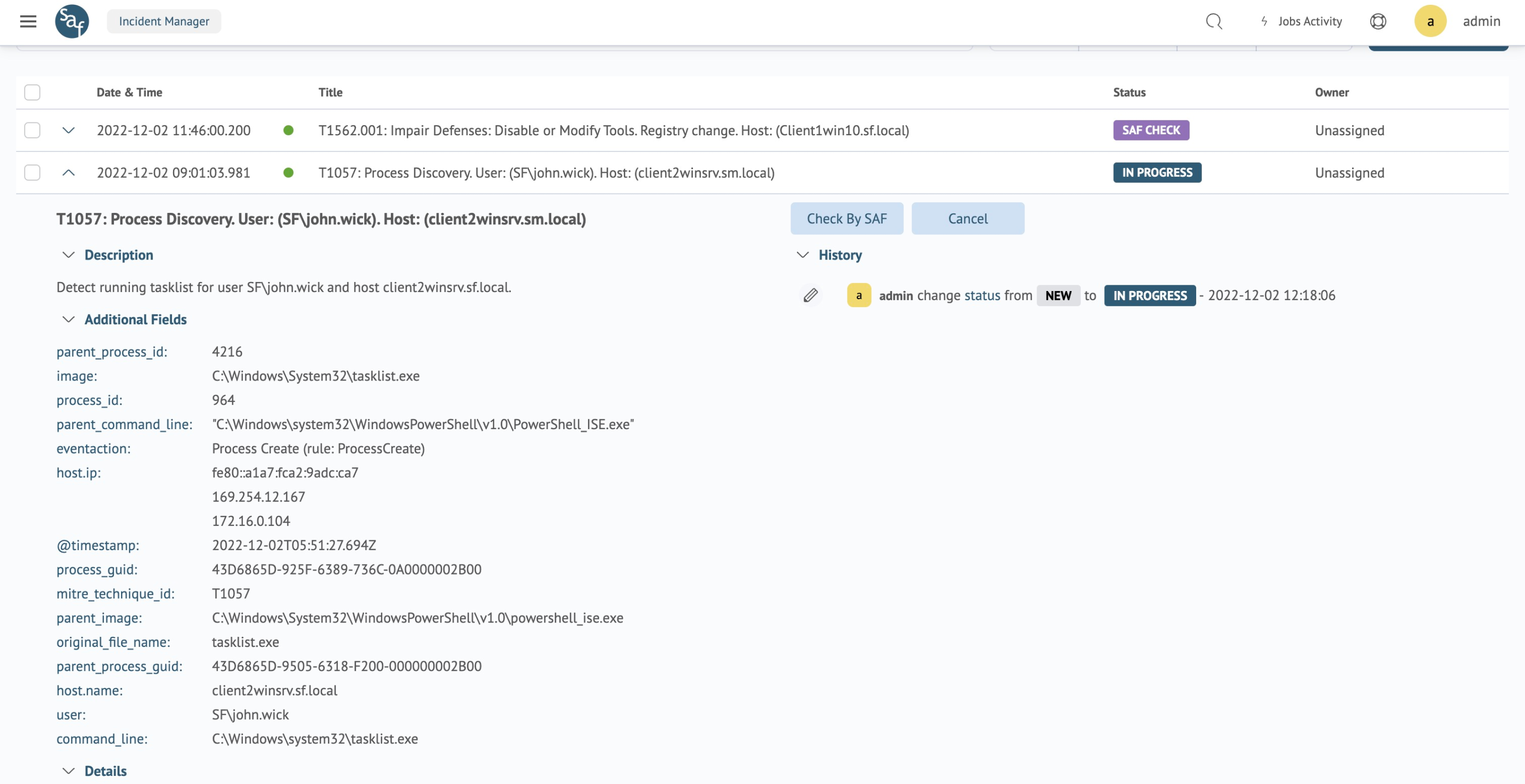 The first thing we will focus on is the Incident Manager module, which collects the triggers of correlation rules. This ensures that all potential incidents are captured and brought to your attention for further analysis and action.